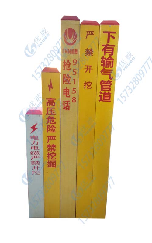 我們在供電、電纜、天然氣等場所經(jīng)常會看到各種標志樁,一塊好的標志樁能清楚的的告訴大家這里有什么,比如:此處有燃氣管道!地下電纜 嚴禁挖掘!提醒我們在施工作業(yè)時要避開此處。從而避免很多不必要的麻煩和損失。標志樁長年累月置于露天處,風(fēng)吹日曬,有時還要面臨酸堿性的雨水侵蝕,這就要求標志樁有著極其強的耐腐蝕性和抗撞擊性。而優(yōu)玻標志樁有著很高的抗壓性能和較長的使用壽命,其耐腐蝕性也是相當強悍的,一般情況下可以使用至少30年以上,而且價格便宜。我公司專門生產(chǎn)標志樁產(chǎn)品,想了解更多信息請聯(lián)系我們!15732809777